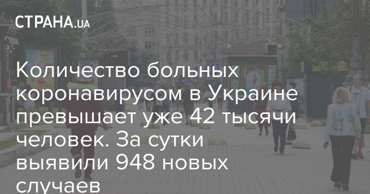 Количество больных коронавирусом в Украине превышает уже 42 тысячи человек. За сутки выявили 948 новых случаев