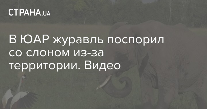 Журавль согнал слона с поляны в парке в ЮАР. Скриншот из видео