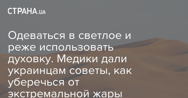 Одеваться в светлое и реже использовать духовку. Медики дали украинцам советы, как уберечься от экстремальной жары