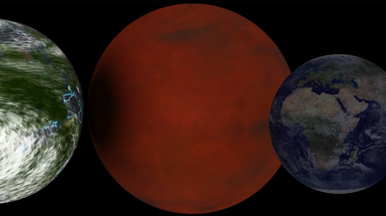 Изображение двух гипотетических суперземель при сравнении с Землей. Фото: wikipedia.org