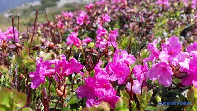 "В высокогорье Карпат, на Черногорском и Мармарошском хребтах массово расцвели рододендроны, которые в народе называют "червона рута ". Пик цветения рододендрона в Карпатах в этом году из-за аномально холодной весны и начала лета опоздал на три недели - если раньше 20 июня красная рута на Черногории уже массово цвела, то в этом только начала цветение. Пик цветения наступит через неделю, а продлится оно еще более 14 дней. Если хотите увидеть красную руту, стоит поспешить - потому что одна хорошая гроза с градом на Черногоре может сразу сбить весь цвет", - рассказал экскурсовод Сергей Прокоп.