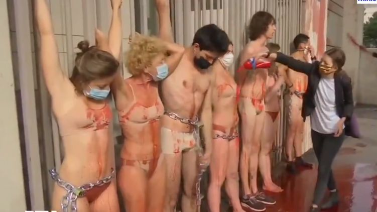 Французские экоактивисты в нижнем белье приковали себя цепью в центре Парижа. Видео