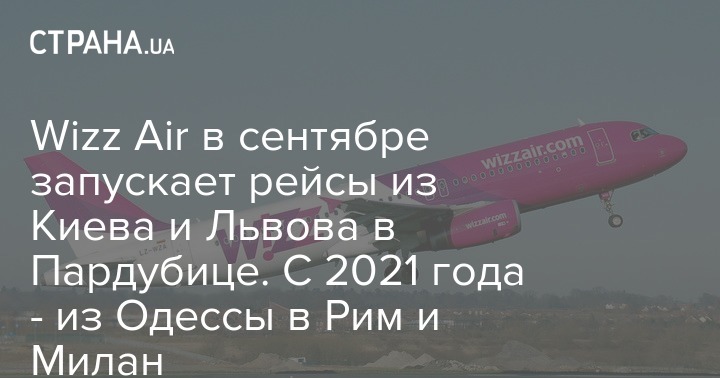 Так, с 1 сентября 2020 года Wizz Аir запускает рейсы из Киева и Львова в Пардубице (Чехия), а с марта 2021 года - из Одессы в Милан, Рим (с 29 марта), и Болонью (с 30 марта). Стоимость билета без багажа начинается от 579 гривен.