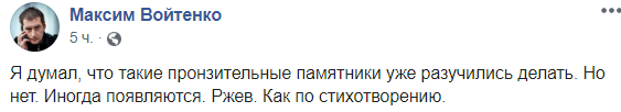 Есть реакция на появление монумента и в Украине.