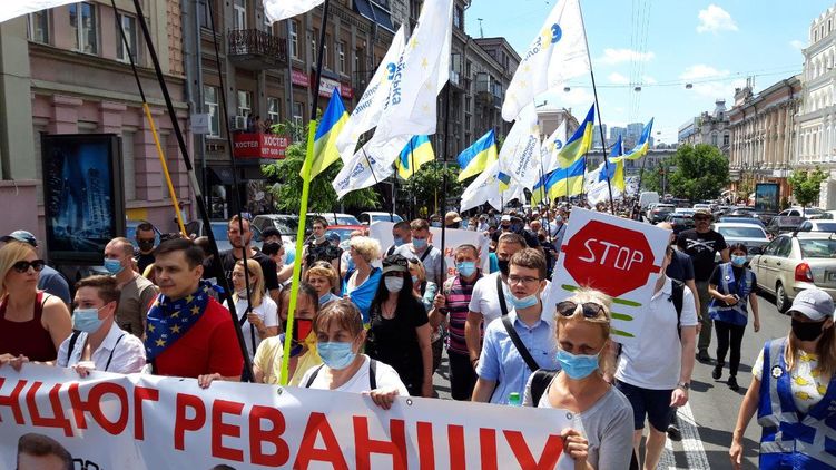Когда Порошенко вышел из ГБР, он возглавил колонну своих оставшихся у ГБР сторонников, они пошли к суду. Полиция перекрыла движение на бульвар Тараса Шевченко. В начале колонны, параллельно с Порошенко, едет его кортеж.
