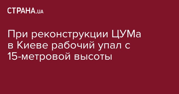 При реконструкции ЦУМа в Киеве рабочий упал с 15-метровой высоты
