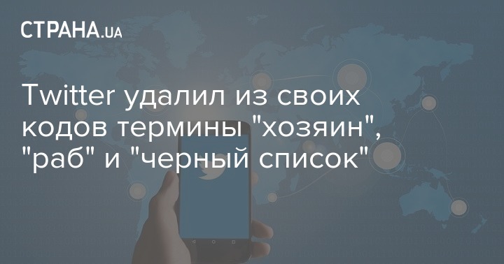 "Платформа социальных сетей Twitter удалила термины "хозяин", "раб" и "черный список" в пользу более инклюзивного языка", - говорится в сообщении.