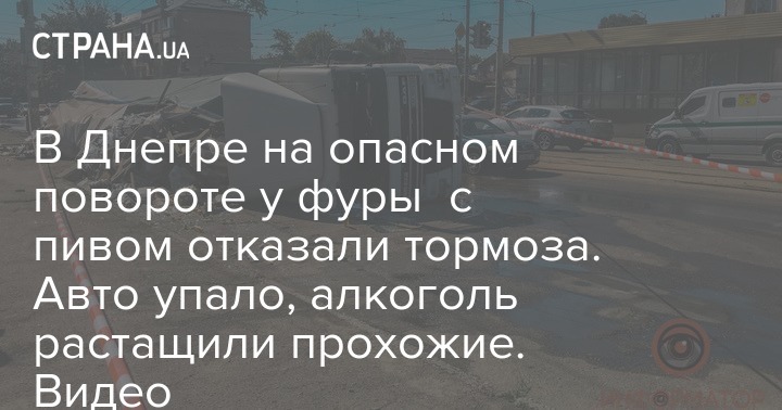 В Днепре груженая пивом фура на огромной скорости не вписалась в крутой поворот и легла на бок, лишь чудом не подмяв под себя други транспортные средства. ДТП произошло на проспекте Нигояна и попало на видео.