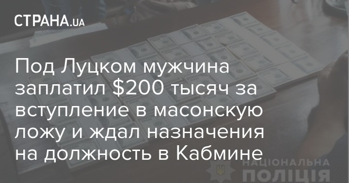 Под Луцком мужчина заплатил $200 тысяч за вступление в масонскую ложу и ждал назначения на должность в Кабмине