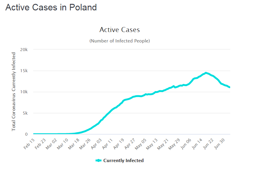 В Польше кривая заболеваемости коронавирусом падает вторую неделю подряд. График