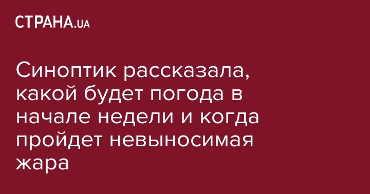 Начало новой рабочей недели в Украине обещает быть таким же знойным, как выходные. Однако с 8 июля придет долгожданная прохлада.