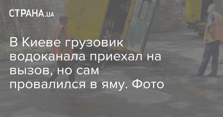 В Киеве грузовик городского водоканала застрял в яме, когда приехал устранять проблему с водой. Перед тем, как рабочие смогли приступить к ремонту, им пришлось вытаскивать автомобиль, который одним колесом застрял в яме возле люка.
