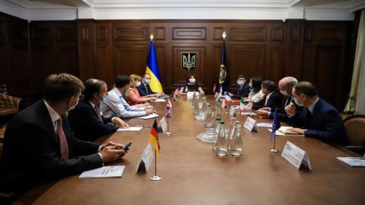 В понедельник, 6 июля, в Офисе генерального прокурора прошла встреча генпрокурора Ирины Венедиктовой с послами стран "Большой семерки" и Европейского Союза. На встрече генпрокурор рассказала иностранным гостям о ходе реформы прокуратуры и аттестации прокуроров.