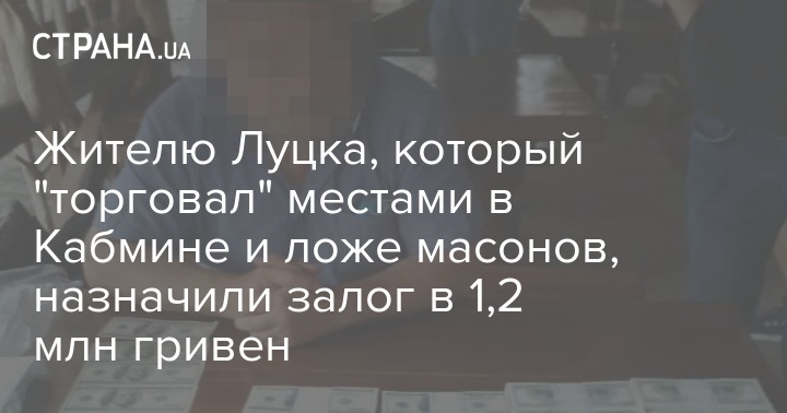Мужчине, который в Луцке пытался "продать" должность в Кабмине и место в закрытой "группе масонов" за 200 000 долларов, избрали меру пресечения. Он арестован с правом внесения залога, размер которого превышает миллион гривен.