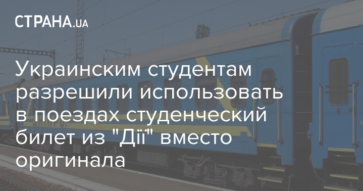 Государственная компания "Укрзализныця" (УЗ) начала принимать цифровой студенческий билет с мобильного приложения "Дія". Студенты при посадке в поезд вместо пластикового оригинала могут предъявить цифровой документ с приложения. Цифровой студенческий билет также позволяет путешествовать поездом со скидкой 50%.