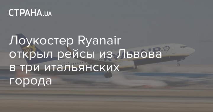 Крупнейший лоукостер Европы компания Ryanair открыла рейсы из Львова в итальянские города Болонья, Милан и Рим и планирует открыть в Бари, Неаполь, Палермо, Турин и Венецию с марта 2021 года.