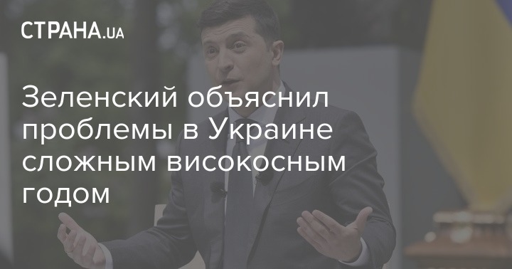Президент Украины Владимир Зеленский заявил, что страна преодолеет все трудности, возникшие в текущем году. Проблемы, которые возникли с 2020-м, он списывает на високосный год. В частности, речь идет о пандемии коронавируса и экономической нестабильности из-за отставки главы Нацбанка Якова Смолия.