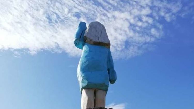 Деревянная скульптура Мелании Трамп располагалась в районе ее родного города Севница. Автором статуи из липы выступил местный художник Алеш Жупевц. Трамп была изображена в полный рост в голубом платье.