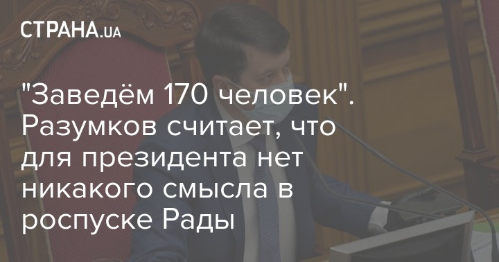 "Для президента и всей команды смысла в роспуске (парламента - Ред.) нет никакого. Состоянием на сегодня у партии 30% рейтинга. Если бы выборы состоялись на этих выходных, чисто теоретически в Раду прошло бы 170-190 человек (сейчас во фракции "Слуга народа" 248 нардепов - Ред.)", - сказал спикер.