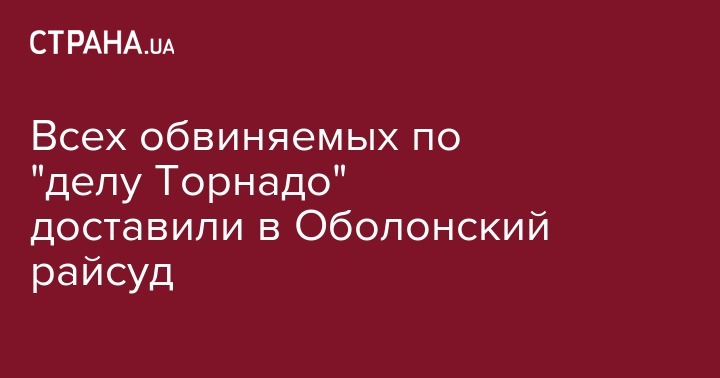 Обвиняемых по "делу Торнадо" 17 августа доставили на заседание в Оболонский районный суд Киева. Об этом сообщила пресс-секретарь суда Инна Свинаренко, передают Украинские новости.