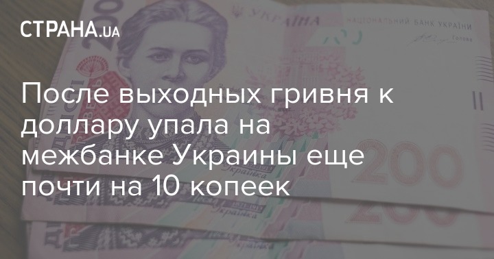 После выходных гривня к доллару упала на межбанке Украины еще почти на 10 копеек