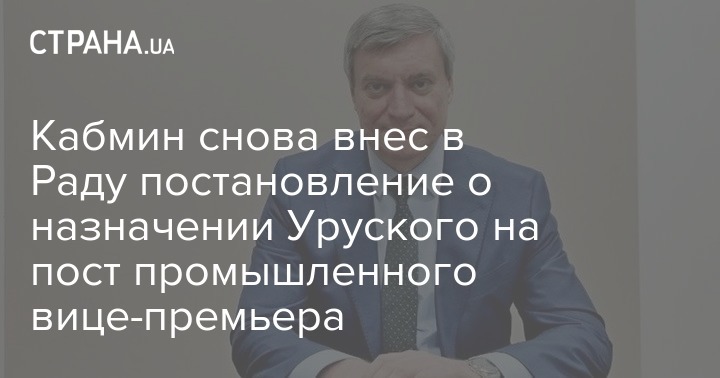 Премьер-министр Украины Денис Шмыгаль повторно внес в Верховную Раду проект постановления о назначении Олега Уруского вице-премьером – министром по вопросам стратегических отраслей промышленности. Хотя еще вчера, 13 июля, правительство без объяснений отозвало его из парламента.