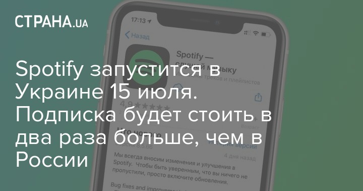 Подписка Spotify Premium, которая позволит слушать музыку офлайн и без рекламы, в Украине будет стоить так же, как и в США, $4,99 (135 грн по курсу). При этом новые пользователи не будут платить за подписку в первый месяц использования.