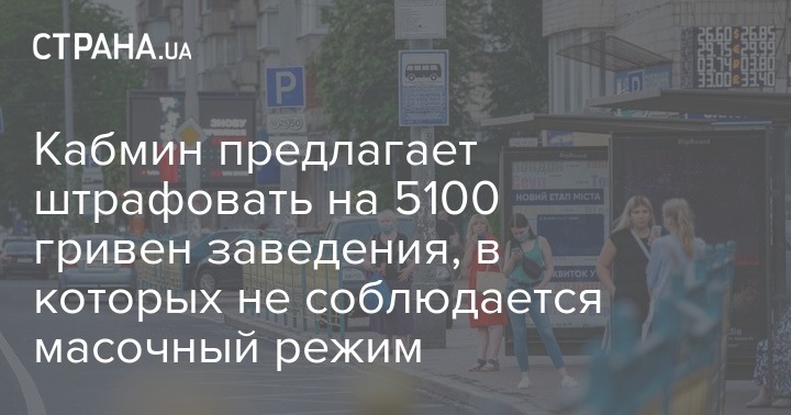 Кроме того, Кабмин одобрил законопроект, в соответствии с которым, собственники общественных мест за то, что посетители не соблюдают масочный режим, должны будут заплатить штраф от 3400 до 5100 гривен. Размер такого штрафа составит от 200 до 300 необлагаемых минимумов доходов граждан (от 3400 до 5100 гривен).