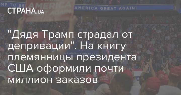 Уже около 950 тысяч заказов на книгу племянницы президента США Мэри Трамп о жизни ее дяди-хозяина Белого дома оформили покупатели в электронном и аудио экземплярах, а также в печатной версии. Книга выходит в свет менее чем за полгода до ноябрьских выборов президента США.