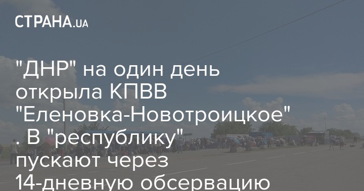 В пятницу, 17 июля, неподконтрольная Украине часть Донбасса со своей стороны на один день откроет КПВВ "Еленовка", которое соединено с КПВВ "Новотроицкое со стороны Украины. Об этом сообщает пресс-служба "правительства" ДНР.