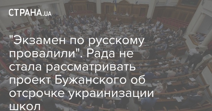 Тот факт, что законопроект Бужанского не поставили на голосование до закрытия сессии Рады, означает, что Зеленский провалил экзамен по русскому языку, пишет Телеграм-канал "Политика Страны".