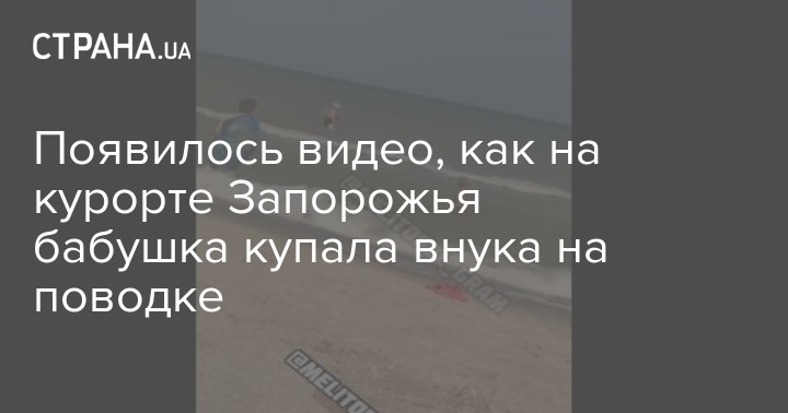 Появилось видео, как на курорте Запорожья бабушка купала внука на поводке