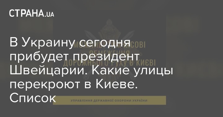Сегодня, 20 июля, начинается государственный визит в Украину федерального президента Швейцарии госпожи Симонетты Соммаруги. Киевских водителей уже предупредили о возможных проблемах на дорогах столицы.