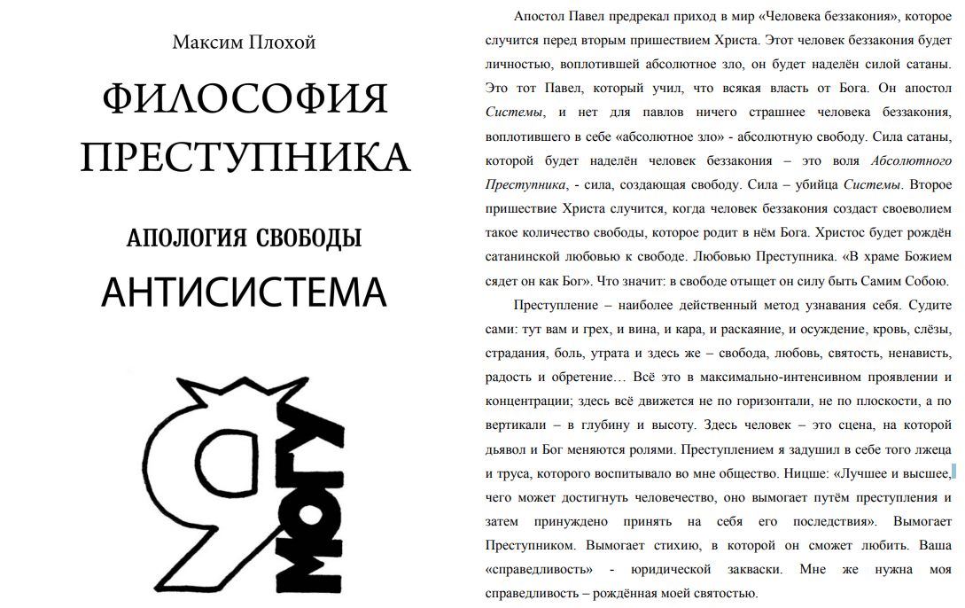 Такими же цитатами наполнены страницы Максима в соцсетях. Он практически ничего не пишет от себя - в его ленте либо "цитаты великих людей", либо выдержки из его собственной книги. Все они так или иначе подводят к идеологии "Антисистемы", которую, судя по всему, исповедует террорист.