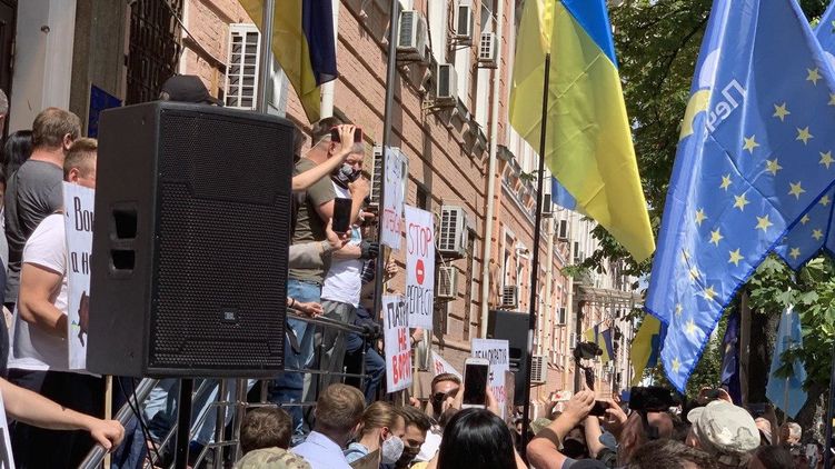 "Страна" сообщала о том, что утром 23 июля в Киеве у суда представители Нацкорпуса и сторонники Порошенко собирались в поддержку "порохобота", облившего зеленкой нардепа Волошина.