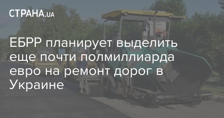 Украина может до конца 2020 года подписать с Европейским банком реконструкции и развития соглашение о получения почти полмиллиарда евро на ремонт дорог.