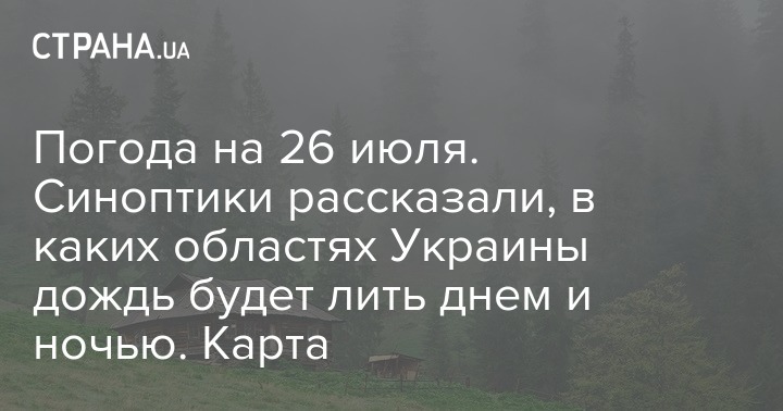 Синоптики рассказали, в каких областях дождь будет лить днем и ночью 26 июля. Карта: Укргидрометцентр
