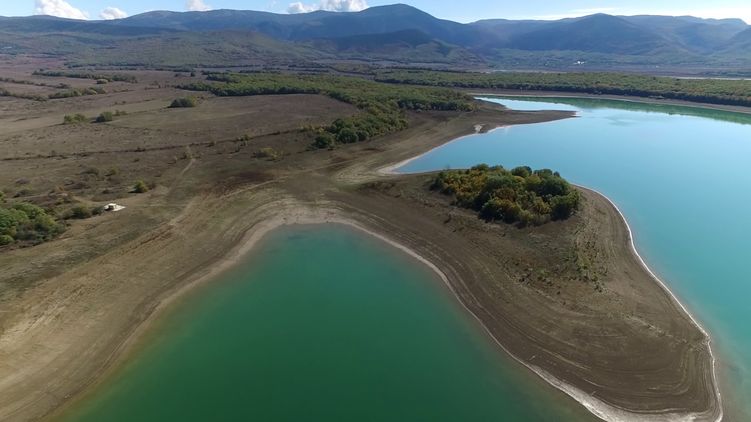 "Так сильно водохранилище никогда не мелело", - рассказали жители расположенного в Байдарской долине села Павловка.