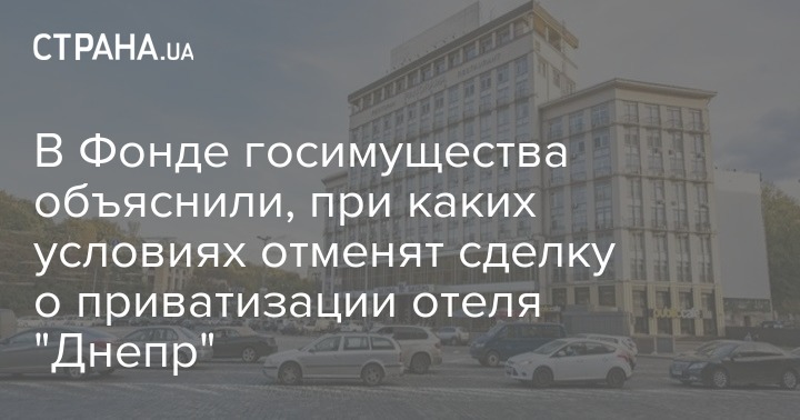 "В приватизационных условиях по отелю "Днепр" прописано, что он должен остаться отелем не ниже четырех звезд, и в названии должно остаться слово "Днепр". Но покупатель может добавить еще слово в название", - заявил "Стране" заместитель главы Фонда госимущества.