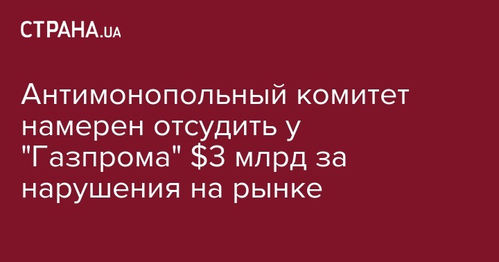 Антимонопольный комитет намерен отсудить у "Газпрома" $3 млрд за нарушения на рынке