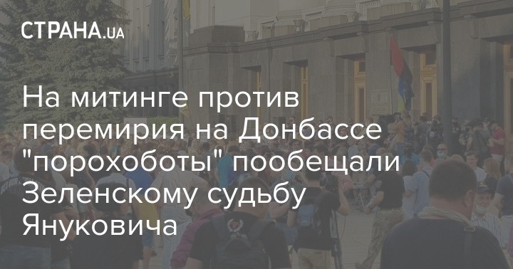 На улице Банковой в Киеве под Офисом президента идет митинг против перемирия на Донбассе, организованный партией "Европейская солидарность". Его спикеры сравнивают Владимира Зеленского с Виктором Януковичем и заверяют, что не допустят капитуляции перед РФ.