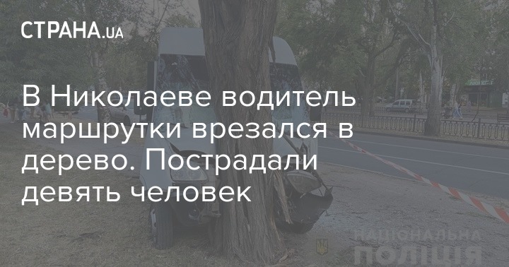 В Николаеве водитель маршрутки въехал в дерево, перевозя пассажиров. В результате аварии пострадали девять человек. Полиция выясняет все обстоятельства.