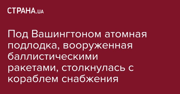 "Подводная лодка Louisiana, оснащенная баллистическими ракетами, столкнулась с кораблем снабжения ВМС США. Это произошло в проливе Хуан-де-Фука вблизи штата Вашингтон", - сказано в сообщении.