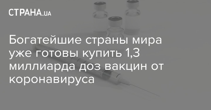 Богатейшие страны мира уже готовы купить 1,3 миллиарда доз вакцин от коронавируса