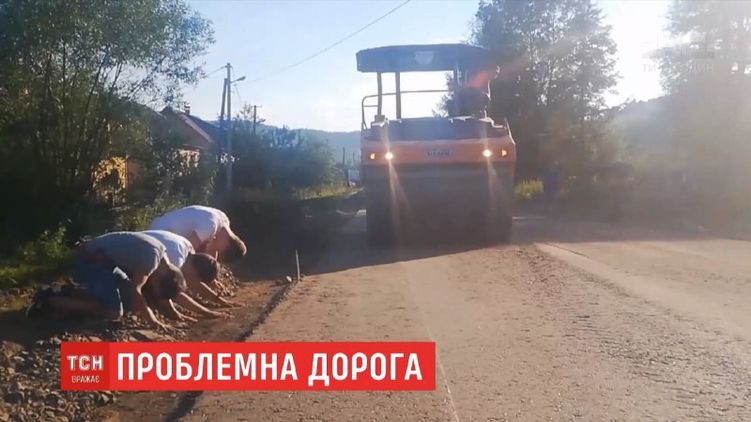 "Дорогу во Львовской области, из-за которой почти 4 суток голодали священник и трое его прихожанок, наконец частично отремонтировали. Положили асфальт почти 4 с половиной километра. Сельские жители смешно поблагодарили ремонтников. Технику провели на коленях и склоняя головы", - говорится в сюжете.