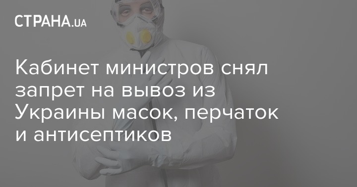 Кабинет министров Украины снял запрет на экспорт средств индивидуальной защиты от вирусных заболеваний, который был введен в марте из-за дефицита СИЗ на фоне пандемии коронавируса.