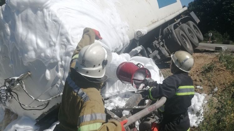 В Чутовском районе Полтавской области грузовик, который перевозил 20 тонн нефти в цистерне, перевернулся в результате ДТП.