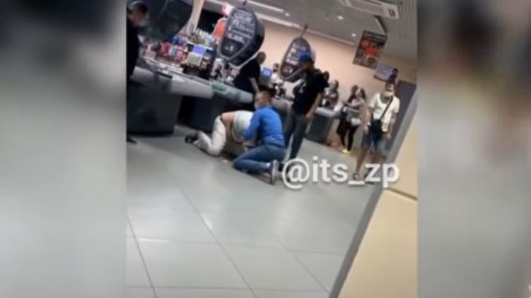Появилось видео, как охранник ловким приемом усмирил покупателя без маски в запорожском магазине