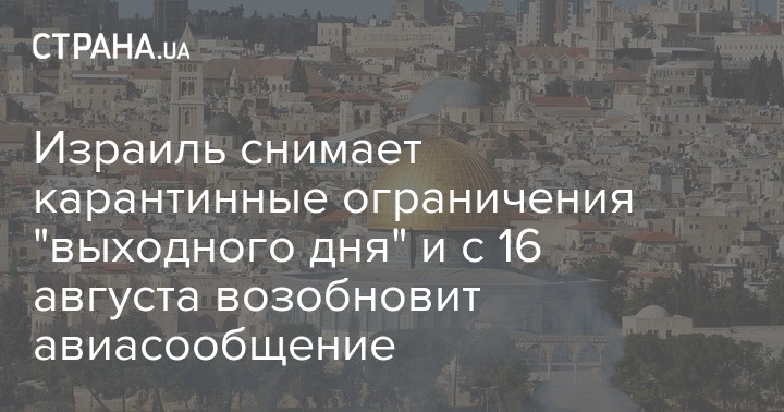 Израиль снимает карантинные ограничения "выходного дня" и с 16 августа возобновит авиасообщение