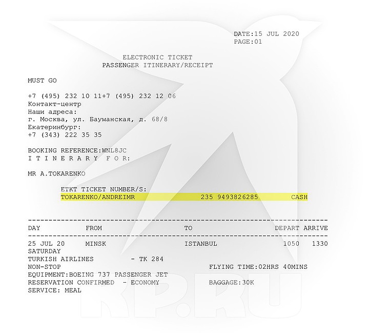 Билеты, как выяснило издание, покупались через Украину. Это подтверждается документом "Турецких авиалиний".